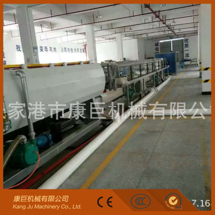 3. PE管材生产线采用专有技术的定径和冷却系统,采用水膜润滑和水环式的冷却,以适应HDPE、PP物料的要求,确保高速生产厚壁管是直径和圆度的稳定.